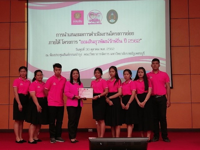 2 พ.ย. 2562 ผู้ช่วยศาสตราจารย์นรีนารถ ศรีวรนารถ รองอธิการบดีมหาวิทยาลัยราชภัฏเพชรบุรี เป็นประธานในพิธีเปิดการนำเสนอผลการดำเนินงานโครงการย่อย ภายใต้โครงการ ออมสินยุวพัฒน์รักษ์ถิ่น ปี 2562 เมื่อวันที่ 30 ตุลาคม 2562