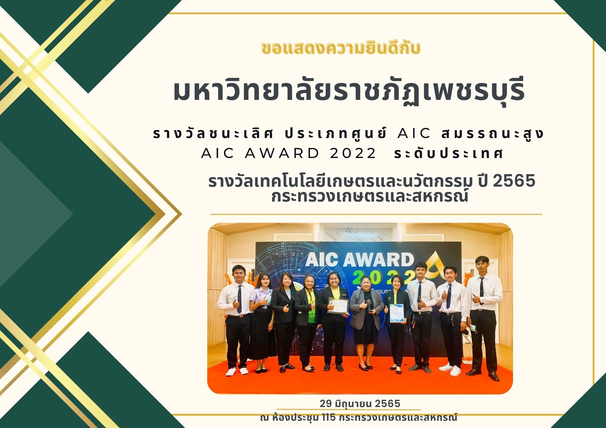 18 ก.ค. 2565 มหาวิทยาลัยราชภัฏเพชรบุรี ได้รางวัลชนะเลิศ AIC Award 2022 ระดับประเทศ จากการประกวดรางวัลเทคโนโลยีเกษตรและนวัตกรรม ปี 2565 ( AIC Award 2022 ) ประเภทศูนย์ AIC สมรรถนะสูง