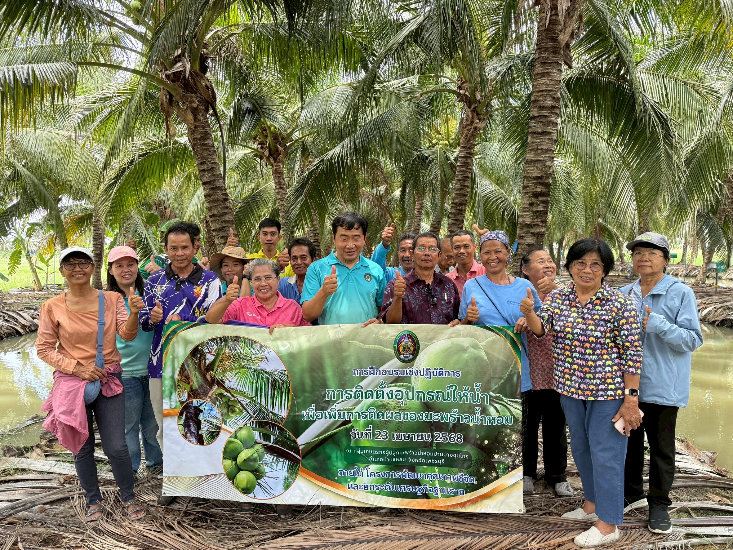 25 เม.ย. 2568 คณะเทคโนโลยีการเกษตร จัดกิจกรรม การฝึกอบรมเชิงปฏิบัติการ “การติดตั้งอุปกรณ์ให้น้ำเพื่อเพิ่มการติดผลของมะพร้าวน้ำหอม”